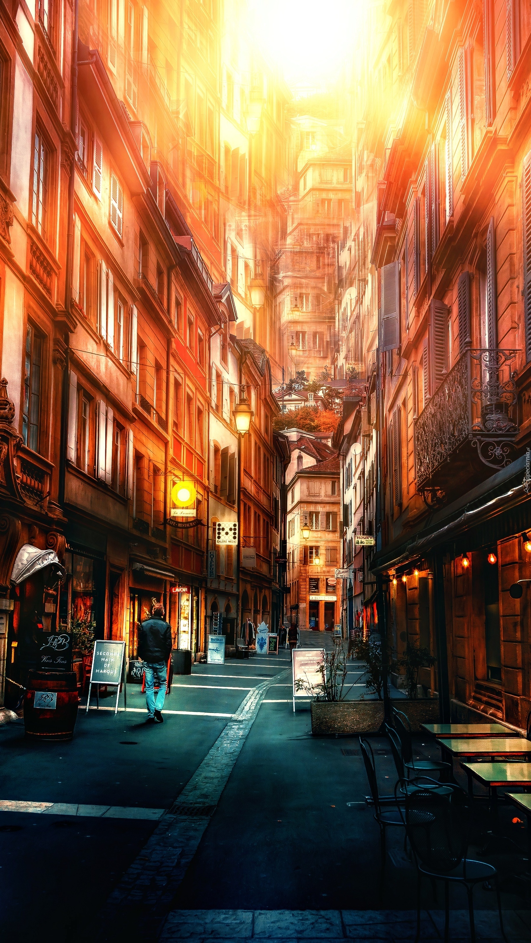 Edytor tapety: Wysokie domy w wąskiej uliczce