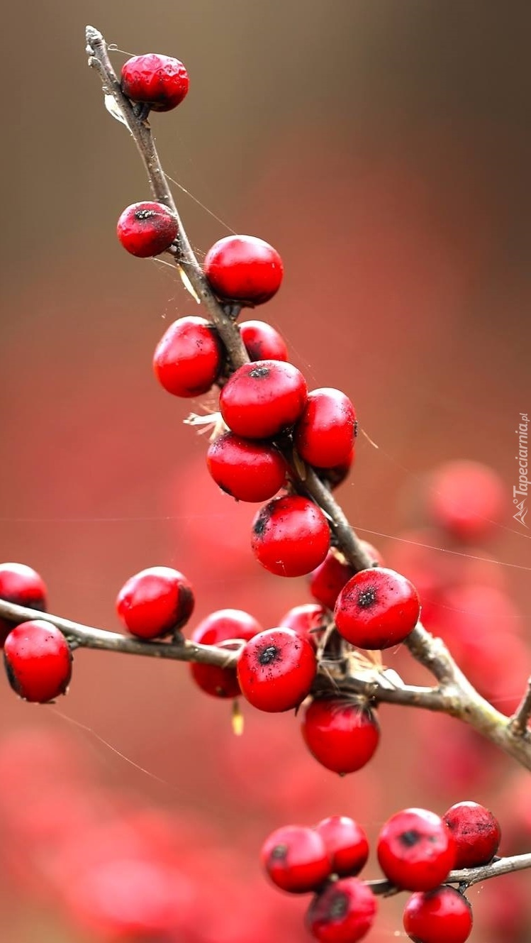 Edytor tapety: Owoce dzikiej róży na gałązkach