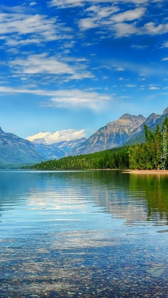 Edytor tapety: Słoneczny dzień nad jeziorem