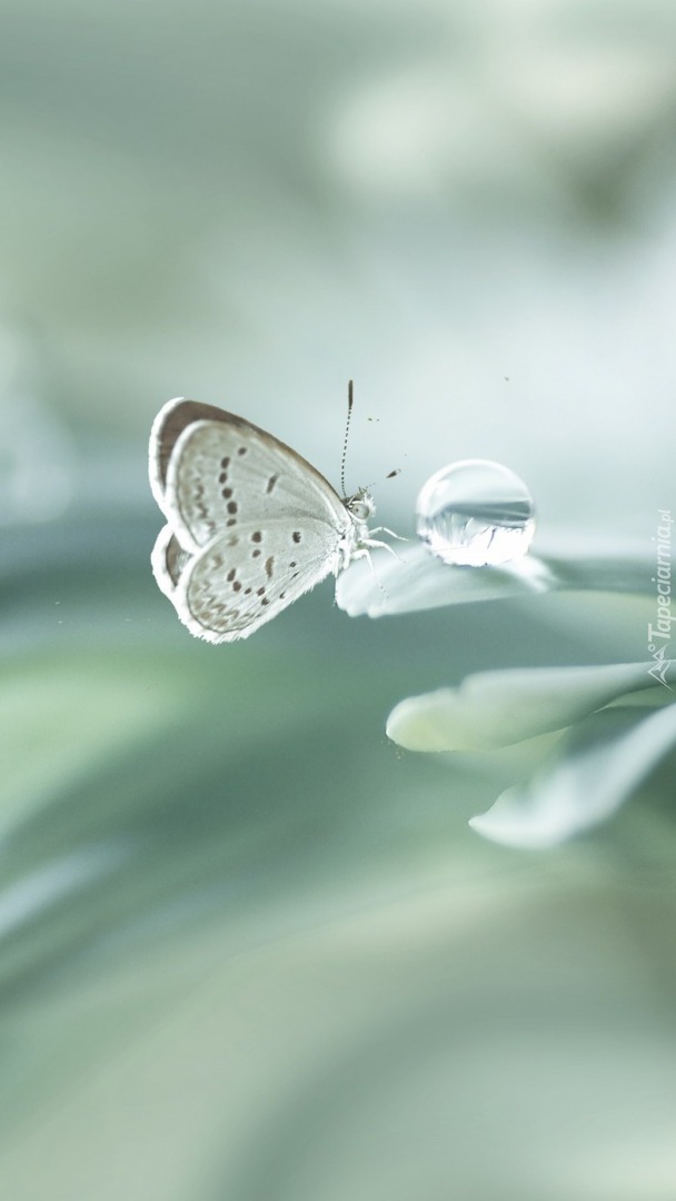 Edytor tapety: Motyl modraszek pijący na płatku kwiatka