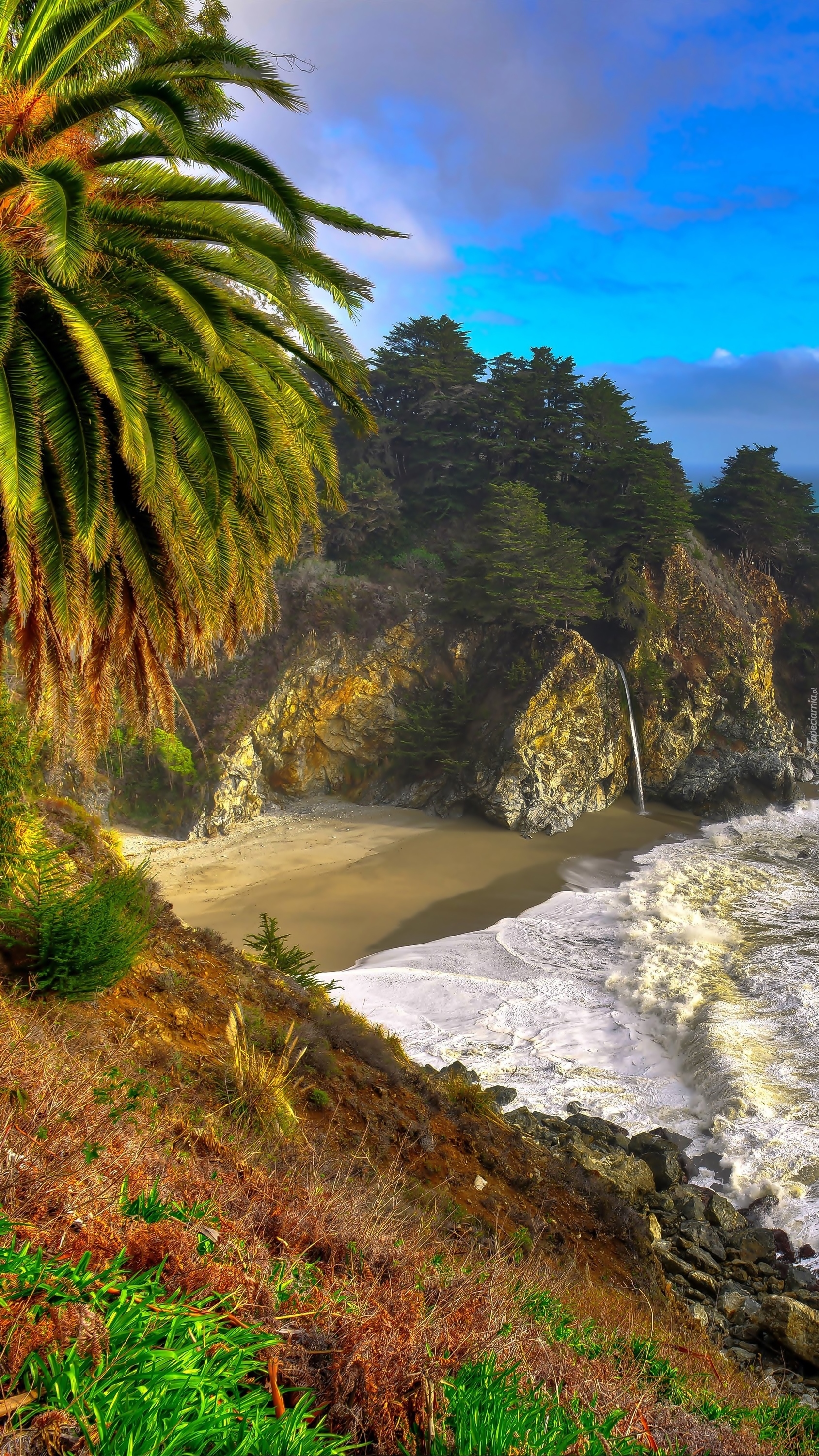 Edytor tapety: Morskie fale obmywają plażę