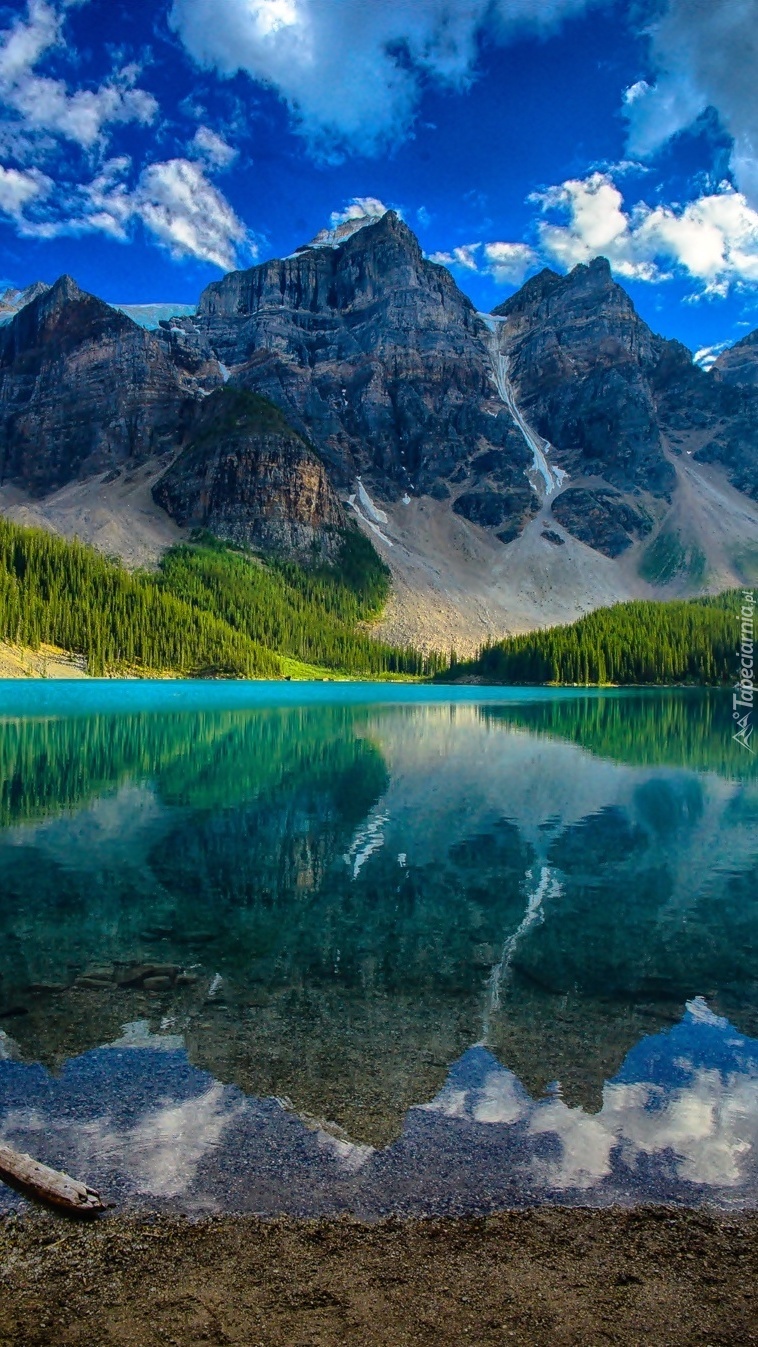 Edytor tapety: Góry u podnóża lazurowego jeziora