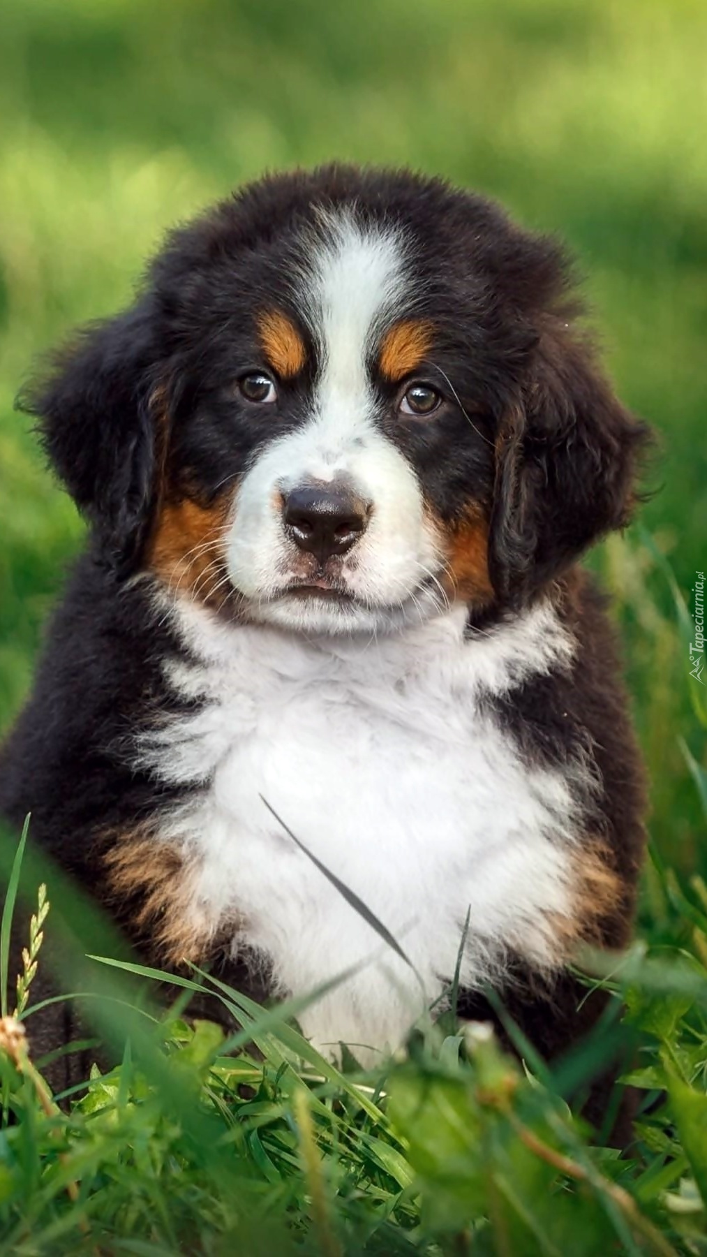 Edytor tapety: Na zielonej łące szczeniaczek berneński