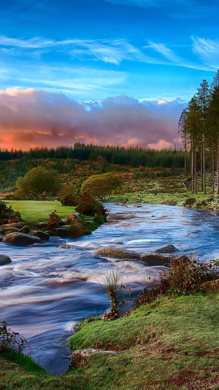 Edytor tapety: Kolorowe niebo nad rzeką w Anglii