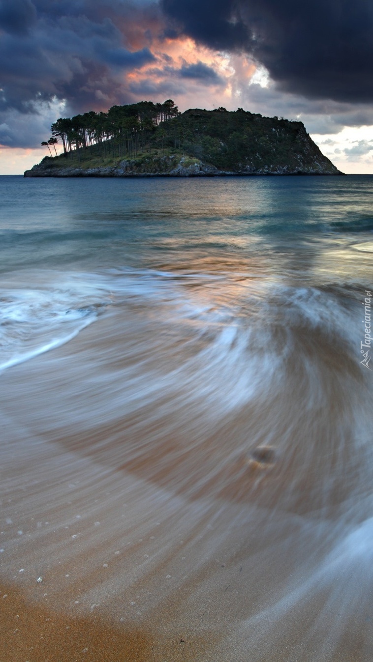 Edytor tapety: Wysepka na morzu pod zachmurzonym niebem