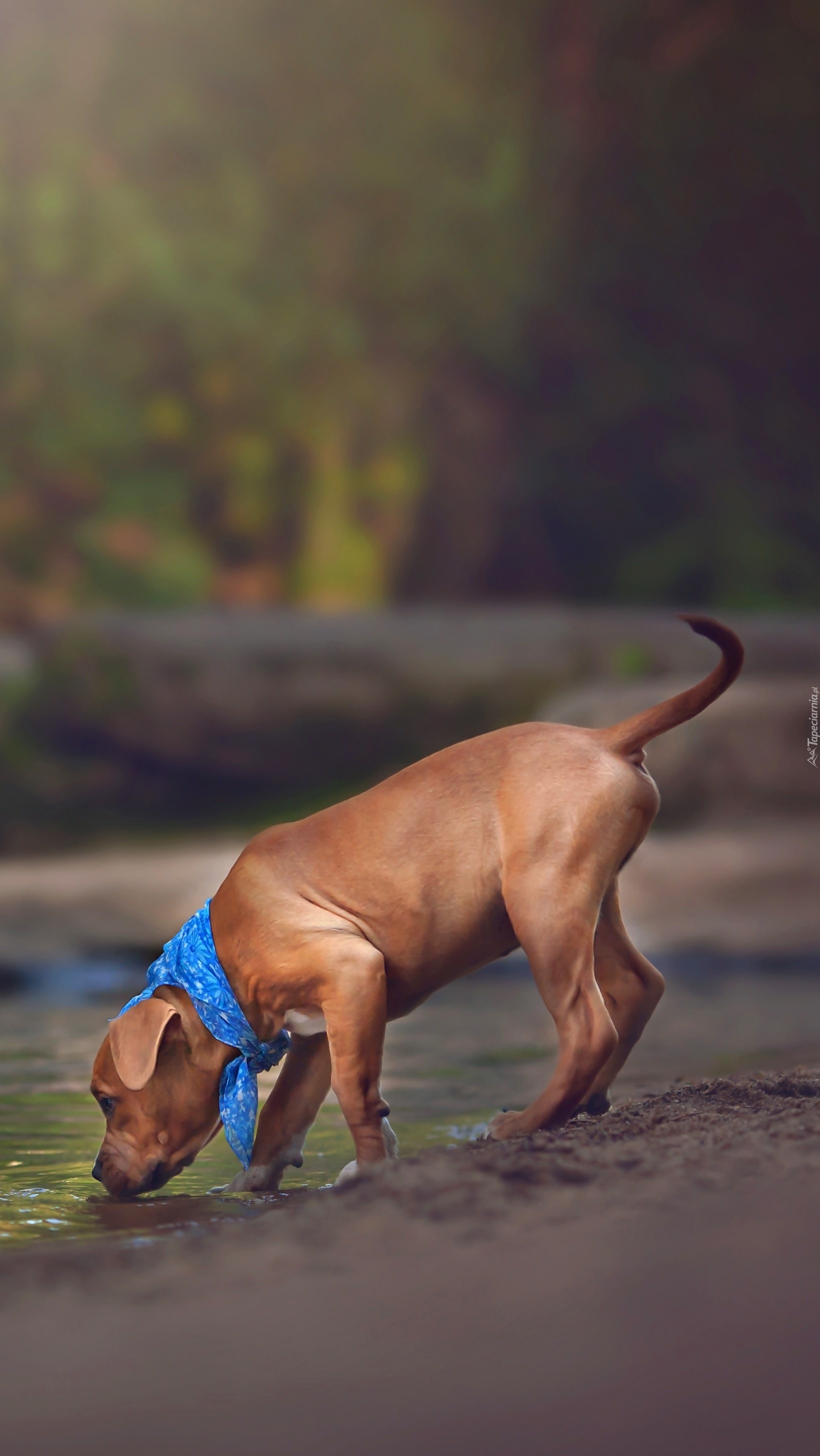 Edytor tapety: Szczeniak w chustce pijący wodę
