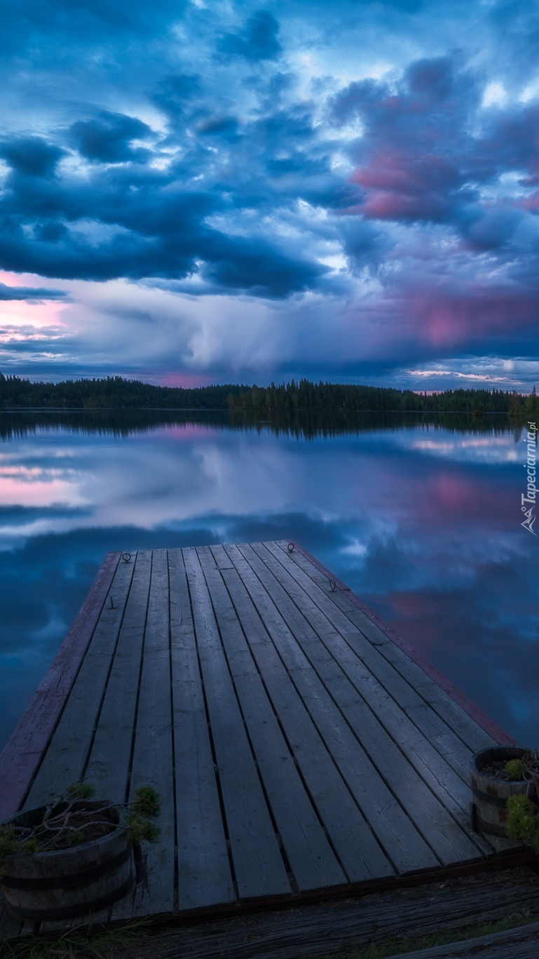 Edytor tapety: Zachmurzone niebo nad jeziorem i pomostem