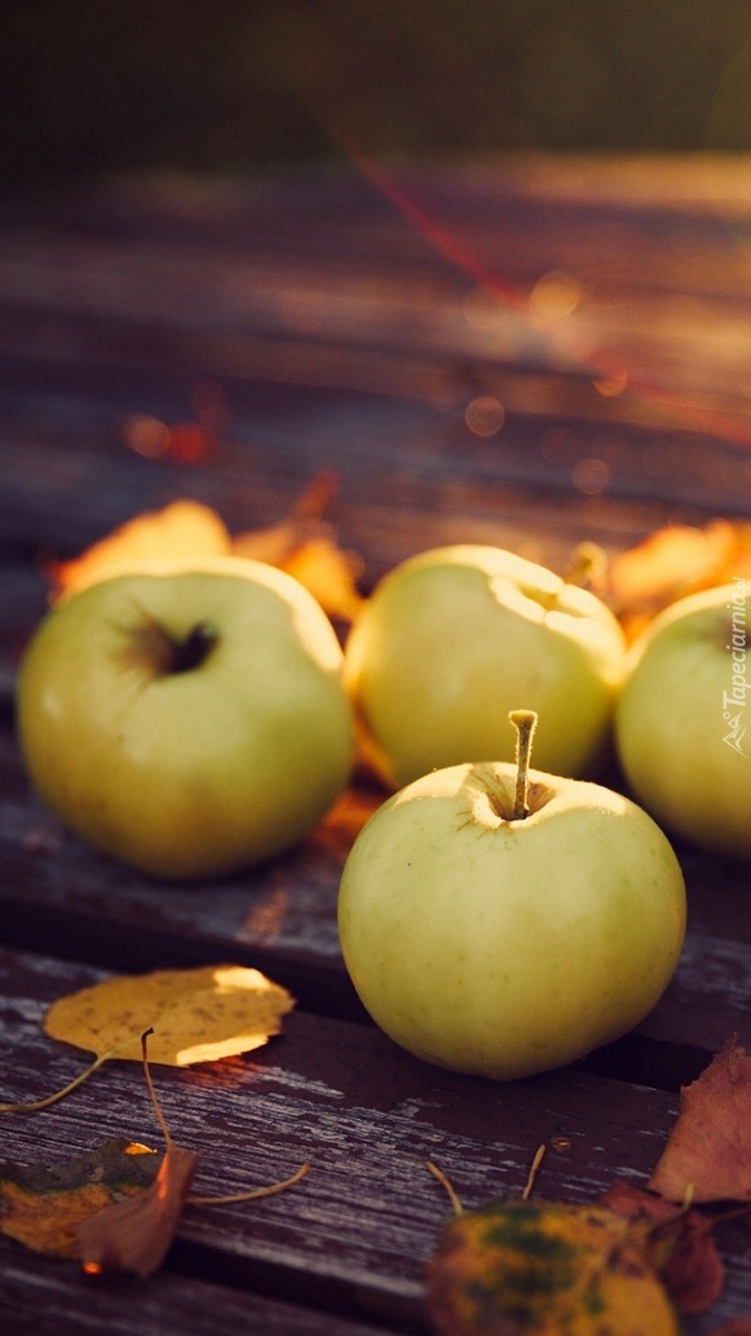 Edytor tapety: Jabłka pośród jesiennych liści