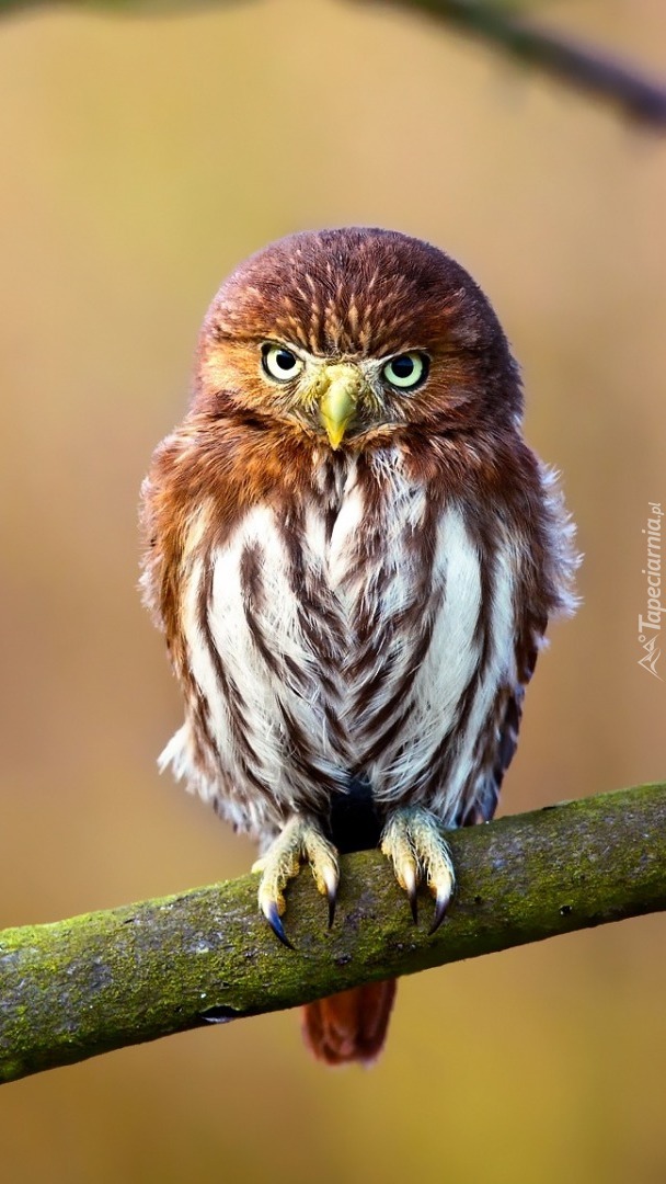 Edytor tapety: Sóweczka dwuplamista na omszałej gałęzi