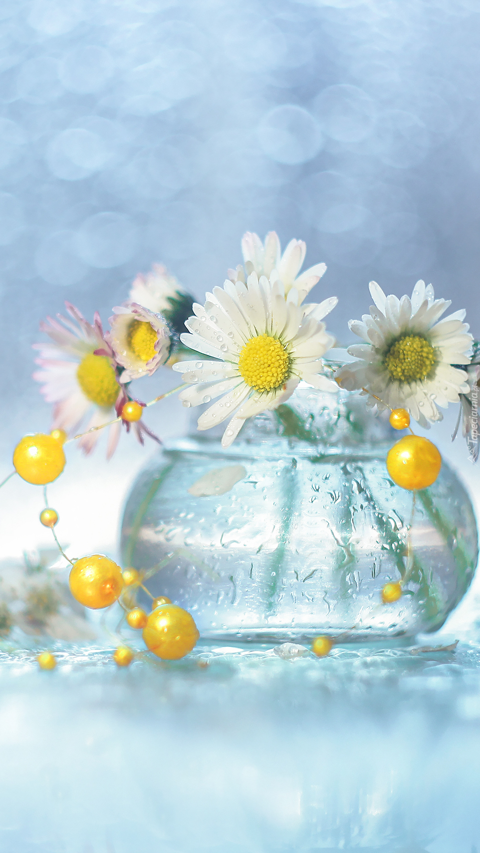 Edytor tapety: Wazonik ze stokrotkami i żółte koraliki