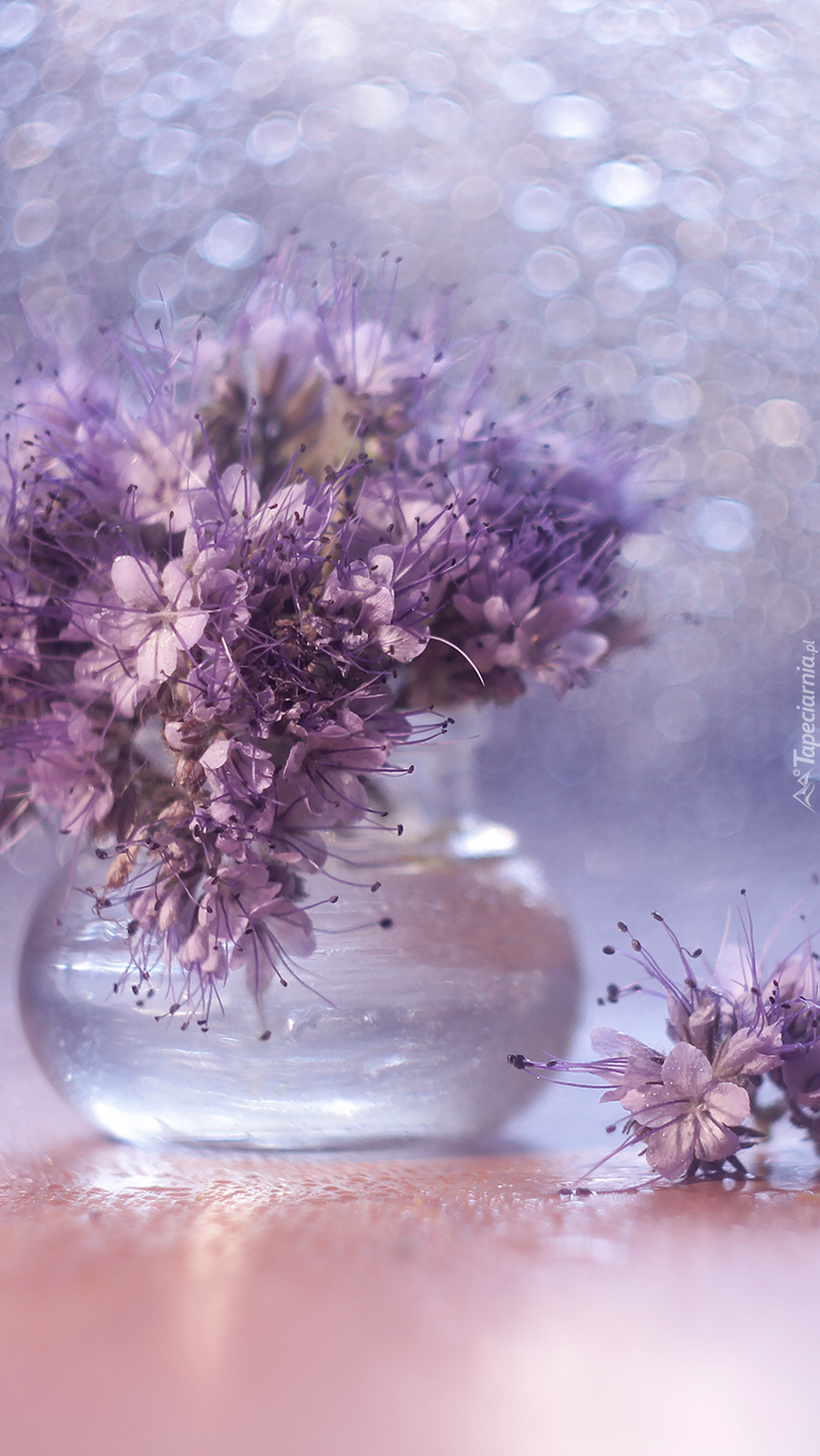 Edytor tapety: Małe drobne kwiatki facelii w wazoniku