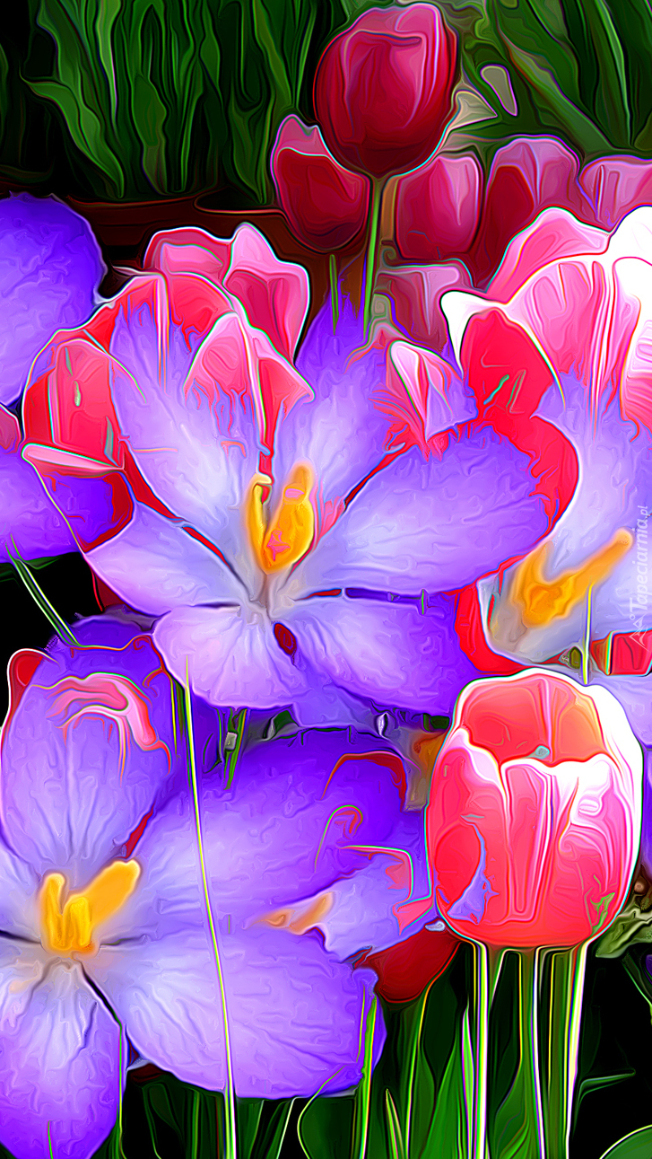 Edytor tapety: Krokusy i tulipany w grafice