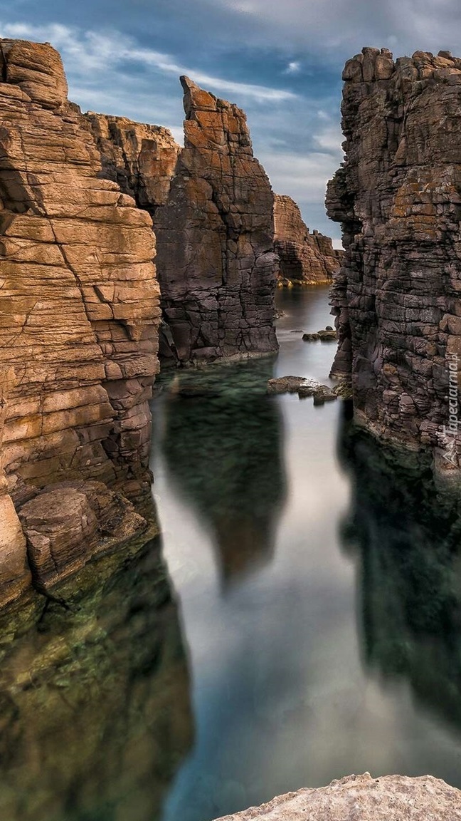 Edytor tapety: Rzeka płynąca między skałami