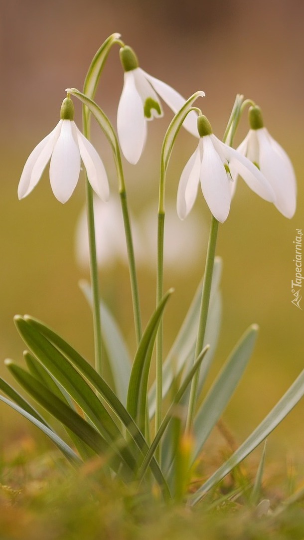 Edytor tapety: Przebiśniegi białe rosnące w trawie
