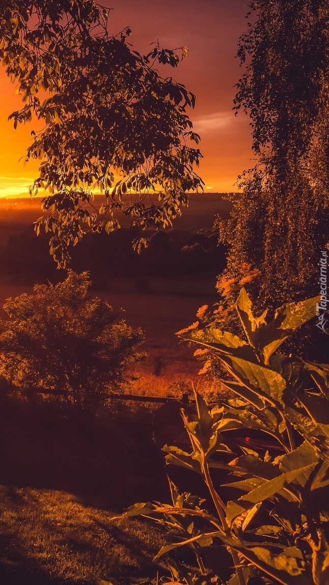 Edytor tapety: Drzewa i pole w promieniach słońca