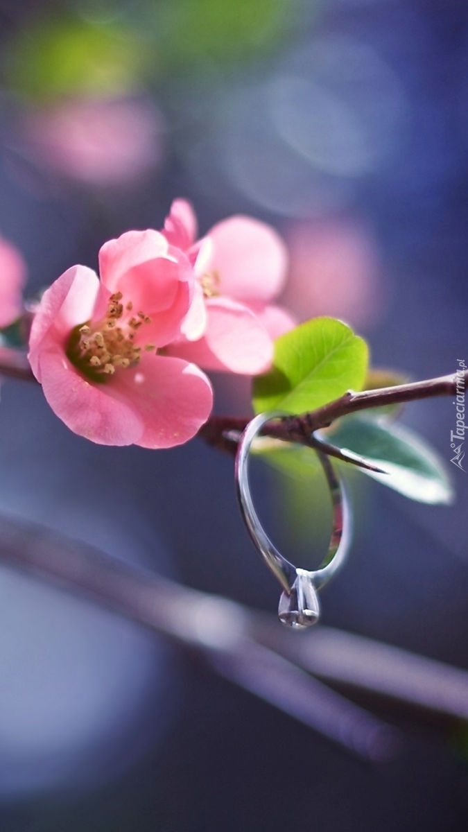 Edytor tapety: Pierścionek zawieszony na ukwieconej gałązce