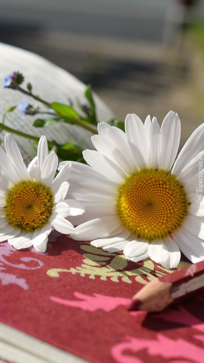 Edytor tapety: Kwiaty i kredka na zeszycie