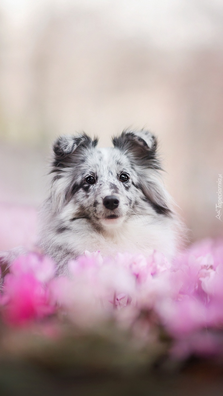Edytor tapety: Owczarek szetlandzki strzegący kwiatów