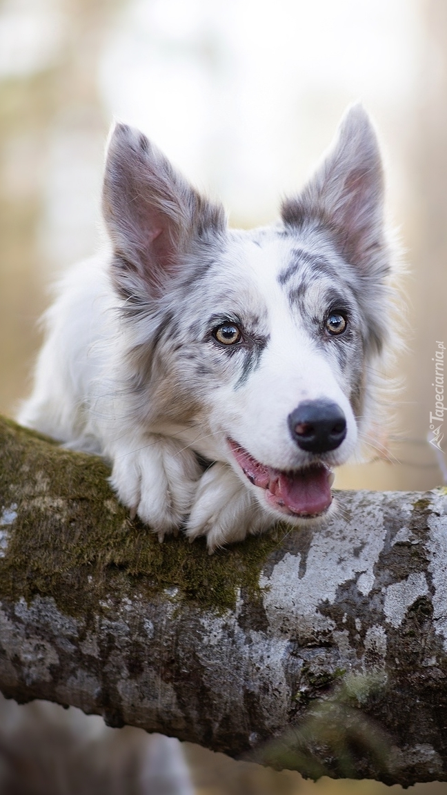 Edytor tapety: Pies oparty o powalone drzewo