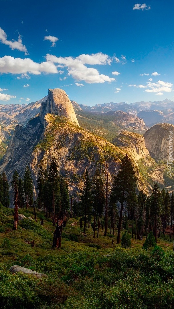 Edytor tapety: Wysmukłe świerki w górach