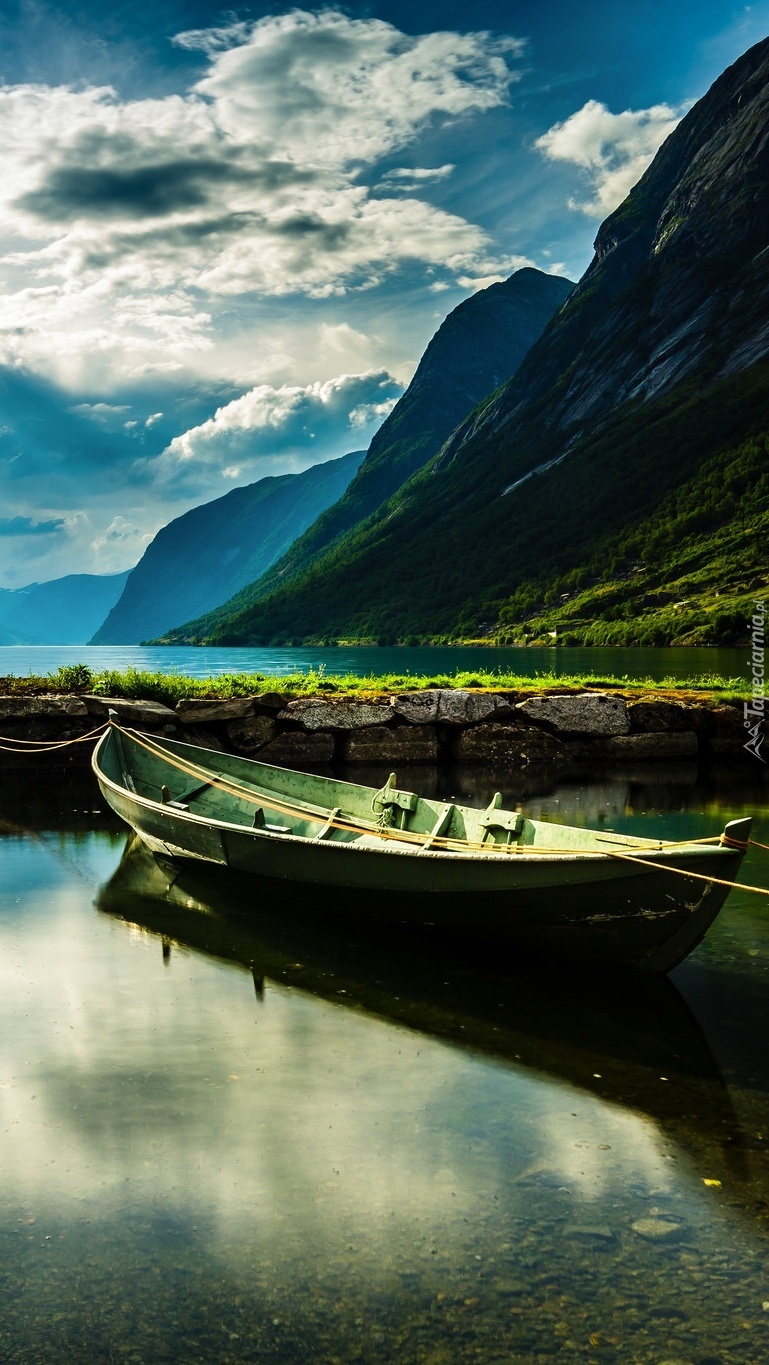 Edytor tapety: Łódka z widokiem na fiord