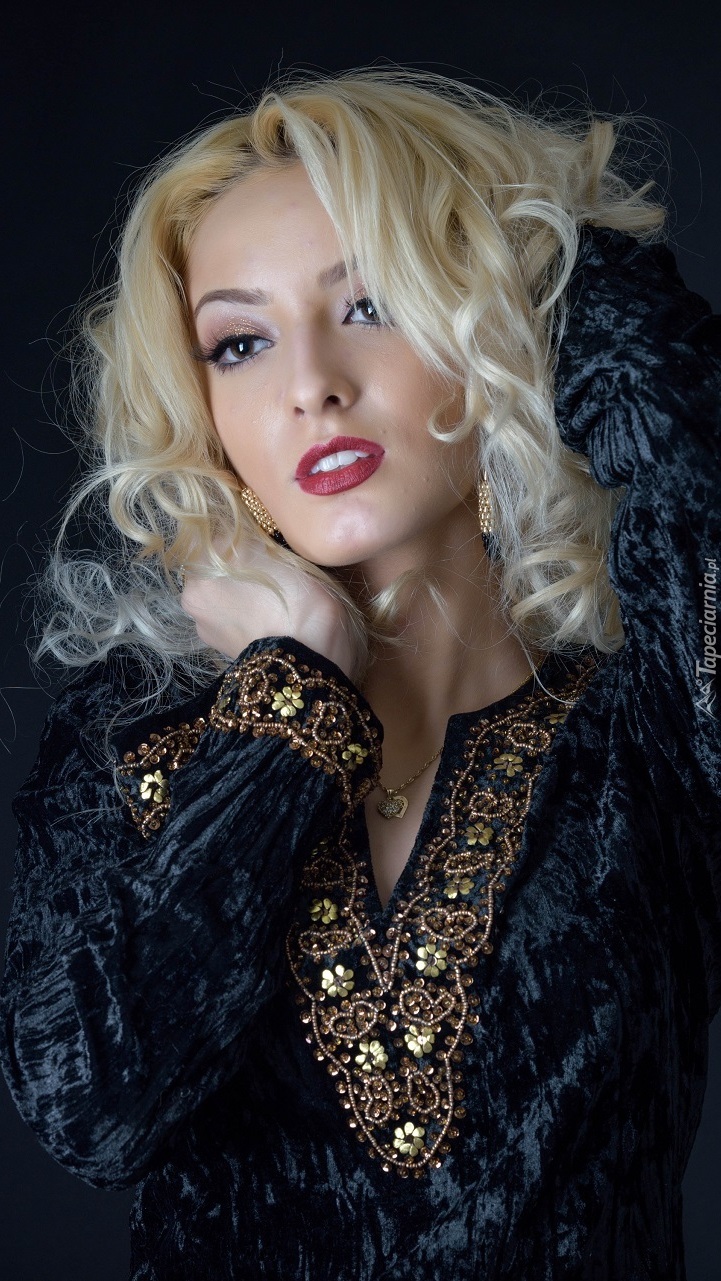 Edytor tapety: Spojrzenie blondynki z długimi włosami