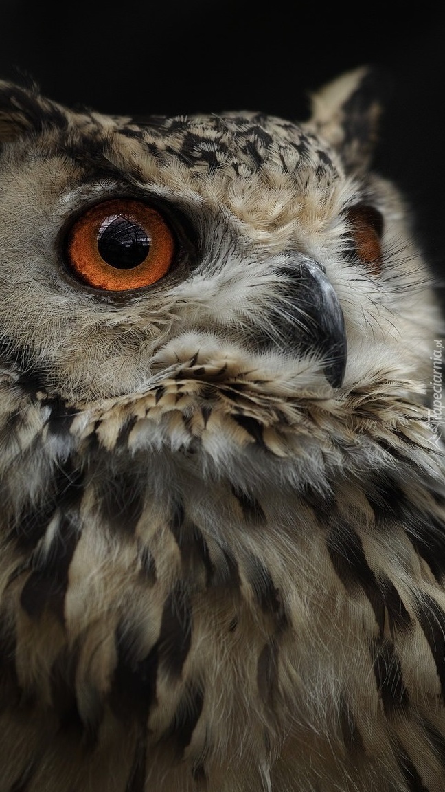 Edytor tapety: Naburmuszona sowa o brązowych oczach