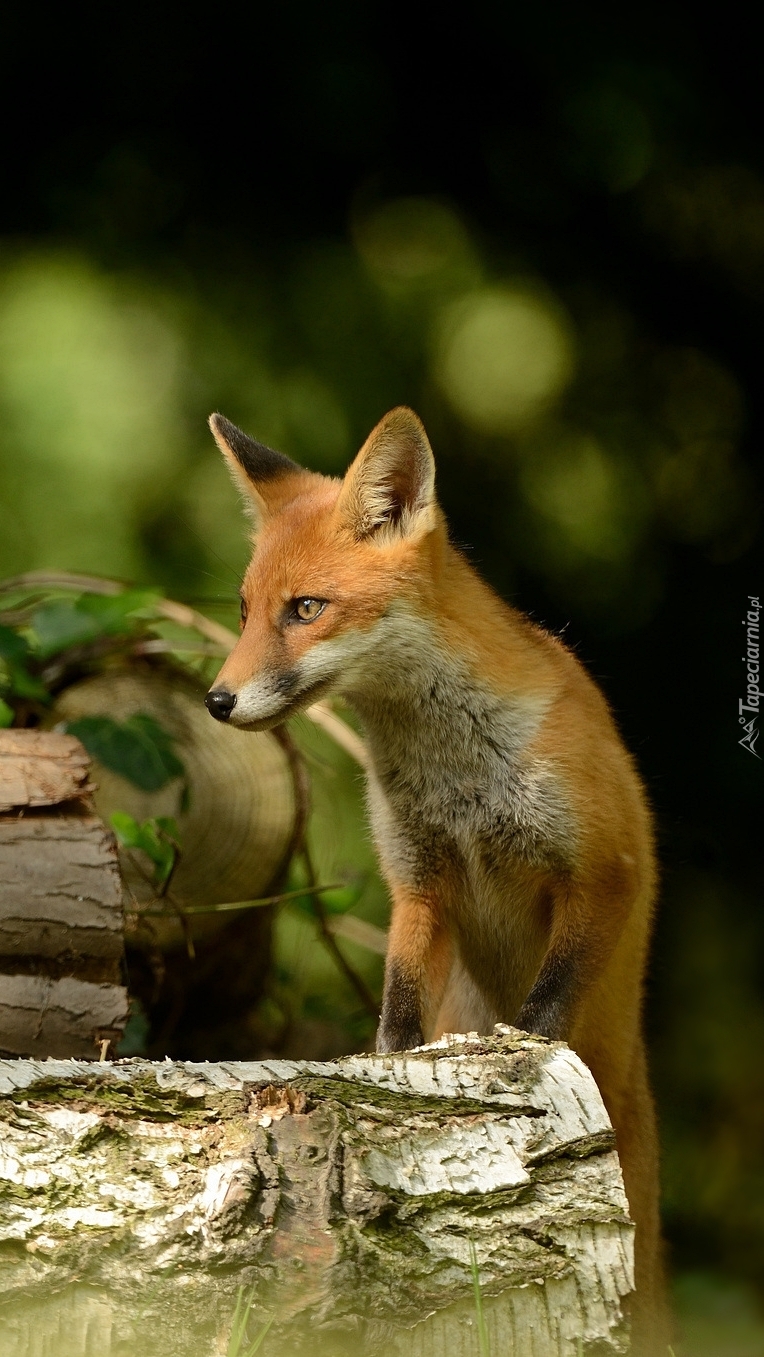 Edytor tapety: Lis chodzący po kłodach