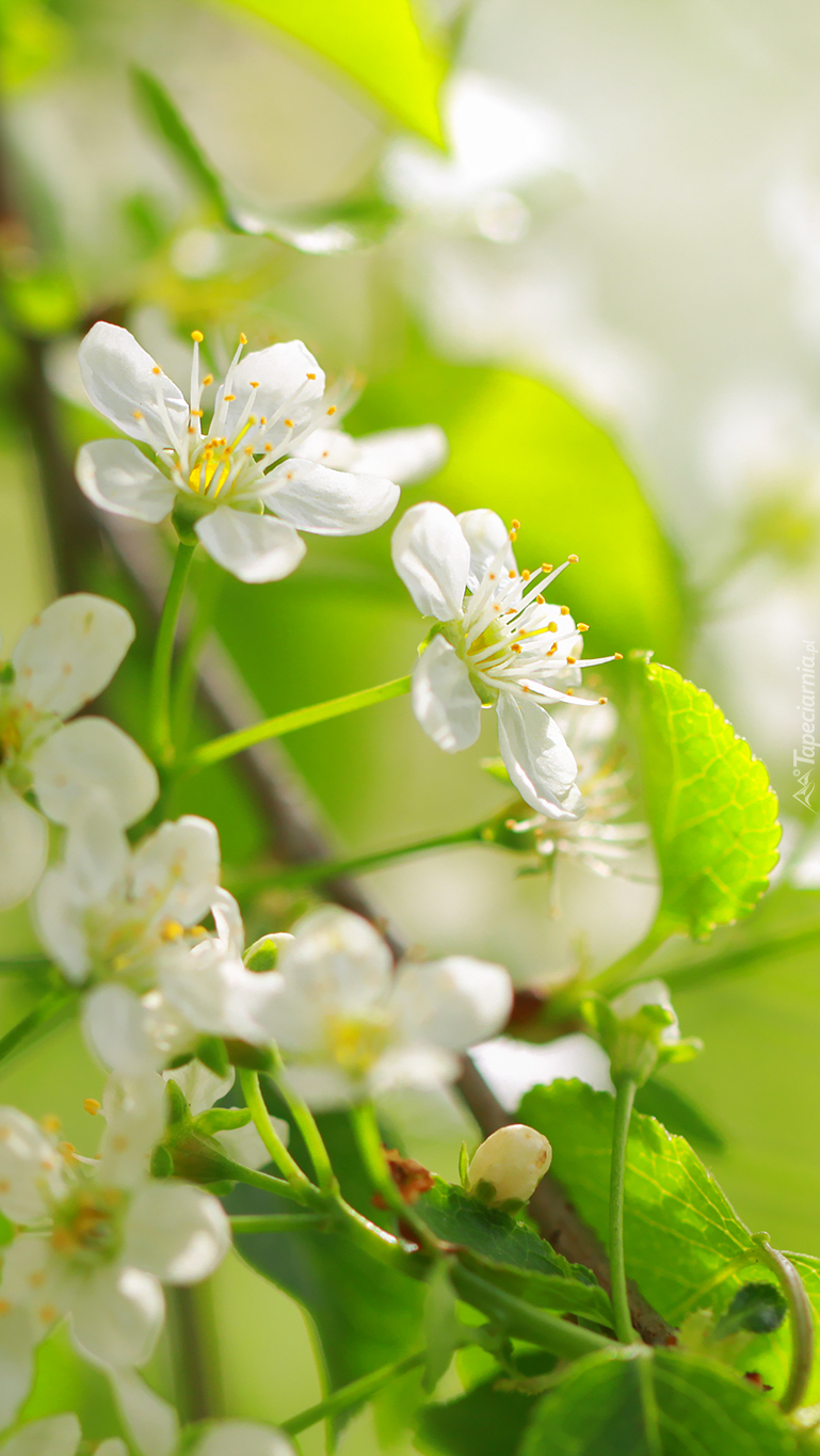 Edytor tapety: Gałązka pełna białych ślicznych kwiatów