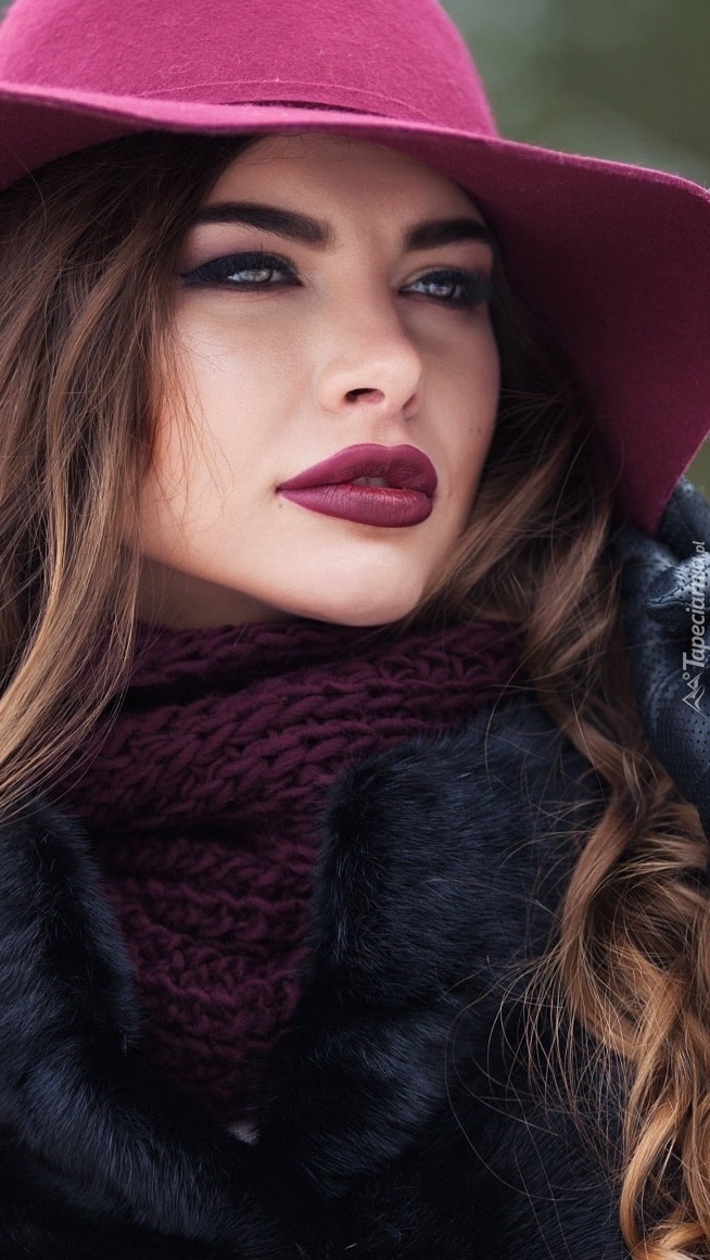 Edytor tapety: Piękna kobieta w stylowym kapeluszu