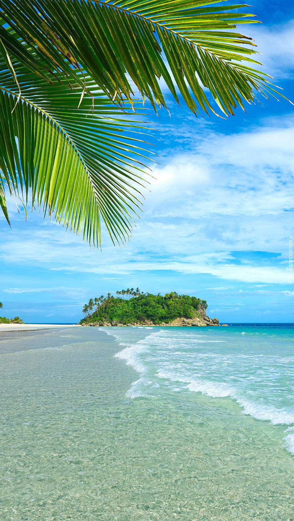 Edytor tapety: Widok z tropikalnej plaży na wysepkę