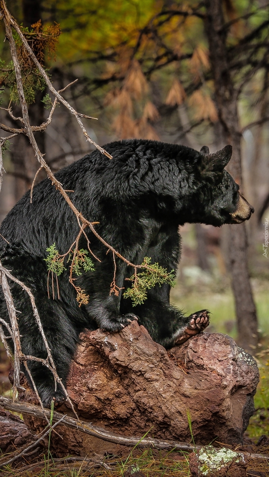 Edytor tapety: Niedżwiedż czarny siedzi na skale