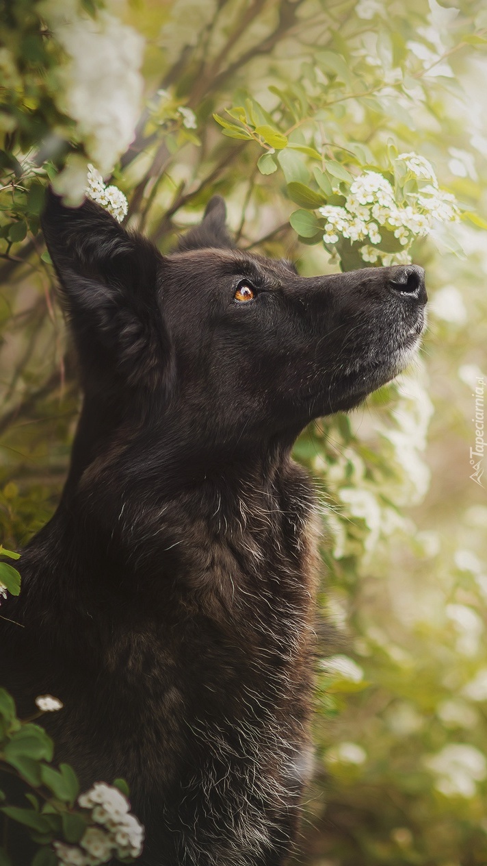 Edytor tapety: Pies przyczajony w krzakach