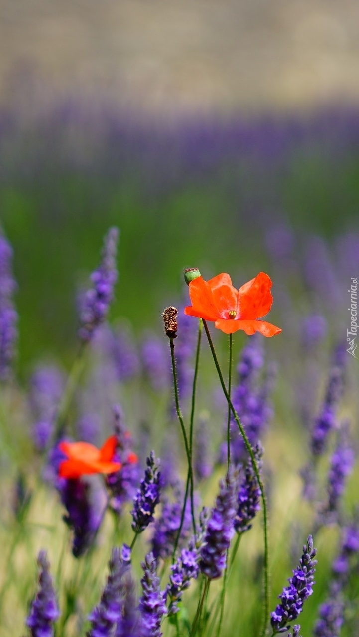 Edytor tapety: Maki i lawenda na łące