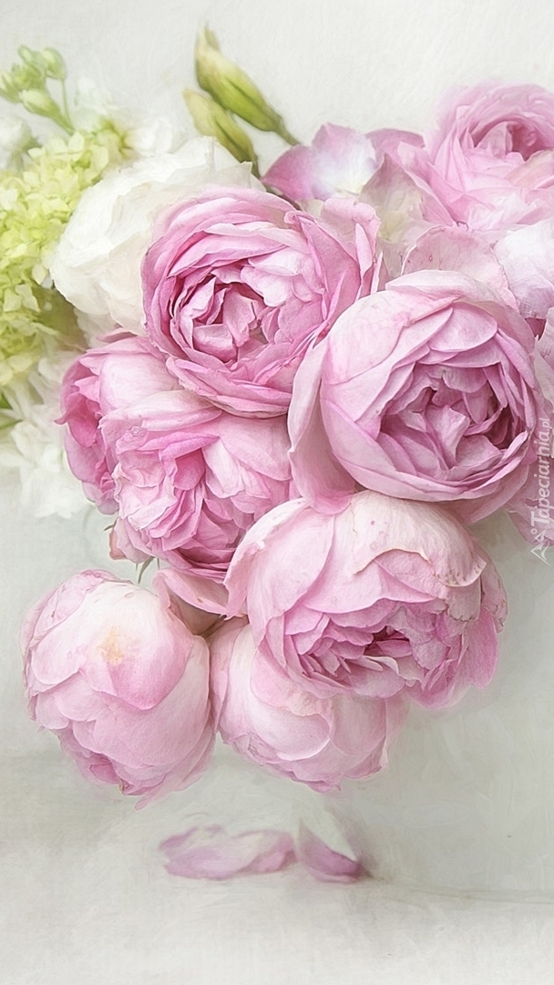 Edytor tapety: Róże koloru różowego w białym wazonie