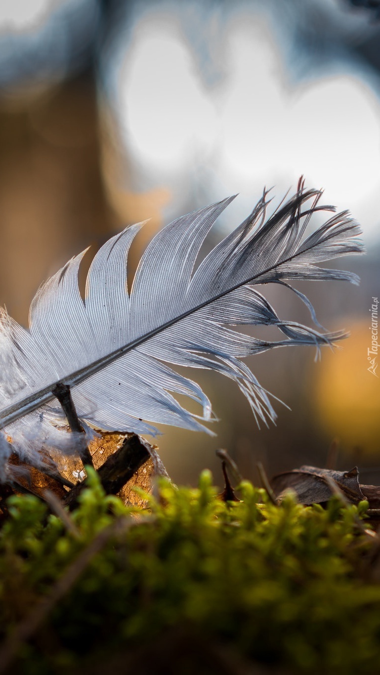 Edytor tapety: Białe piórko w zbliżeniu na ściółce