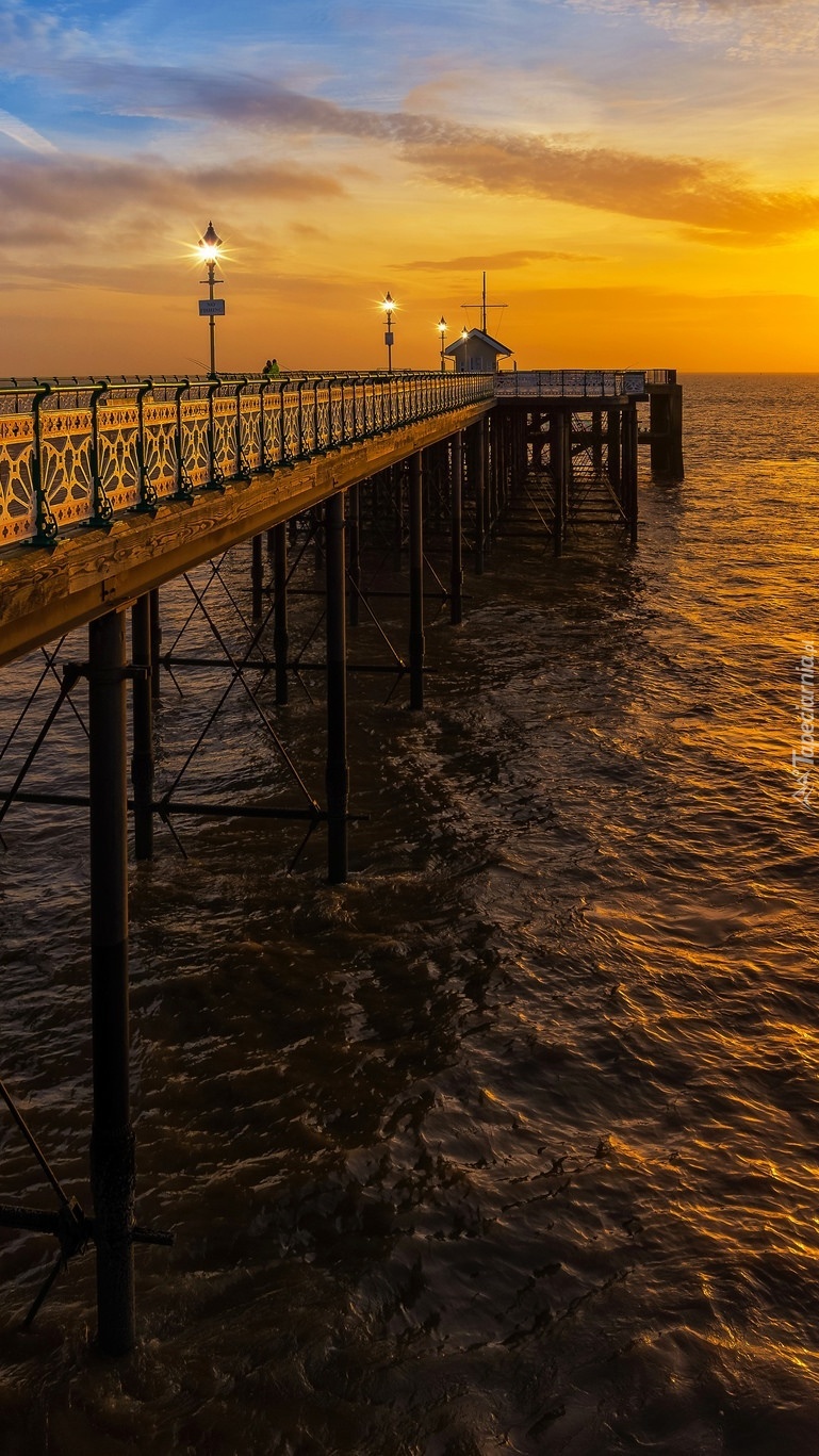 Edytor tapety: Oświetlone molo w promieniach zachodzącego słońca