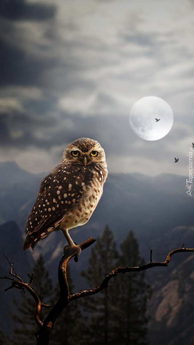 Edytor tapety: Sowa na drzewie w gwiaździstą noc