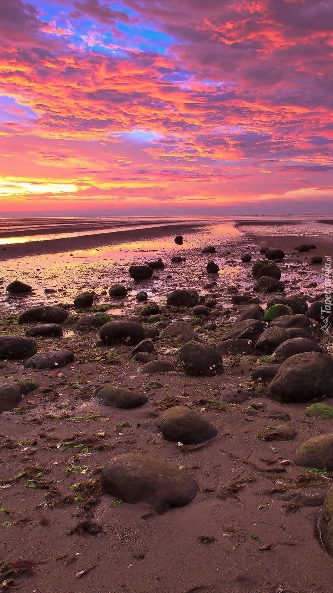 Edytor tapety: Zmierzch nad kamienistym wybrzeżem
