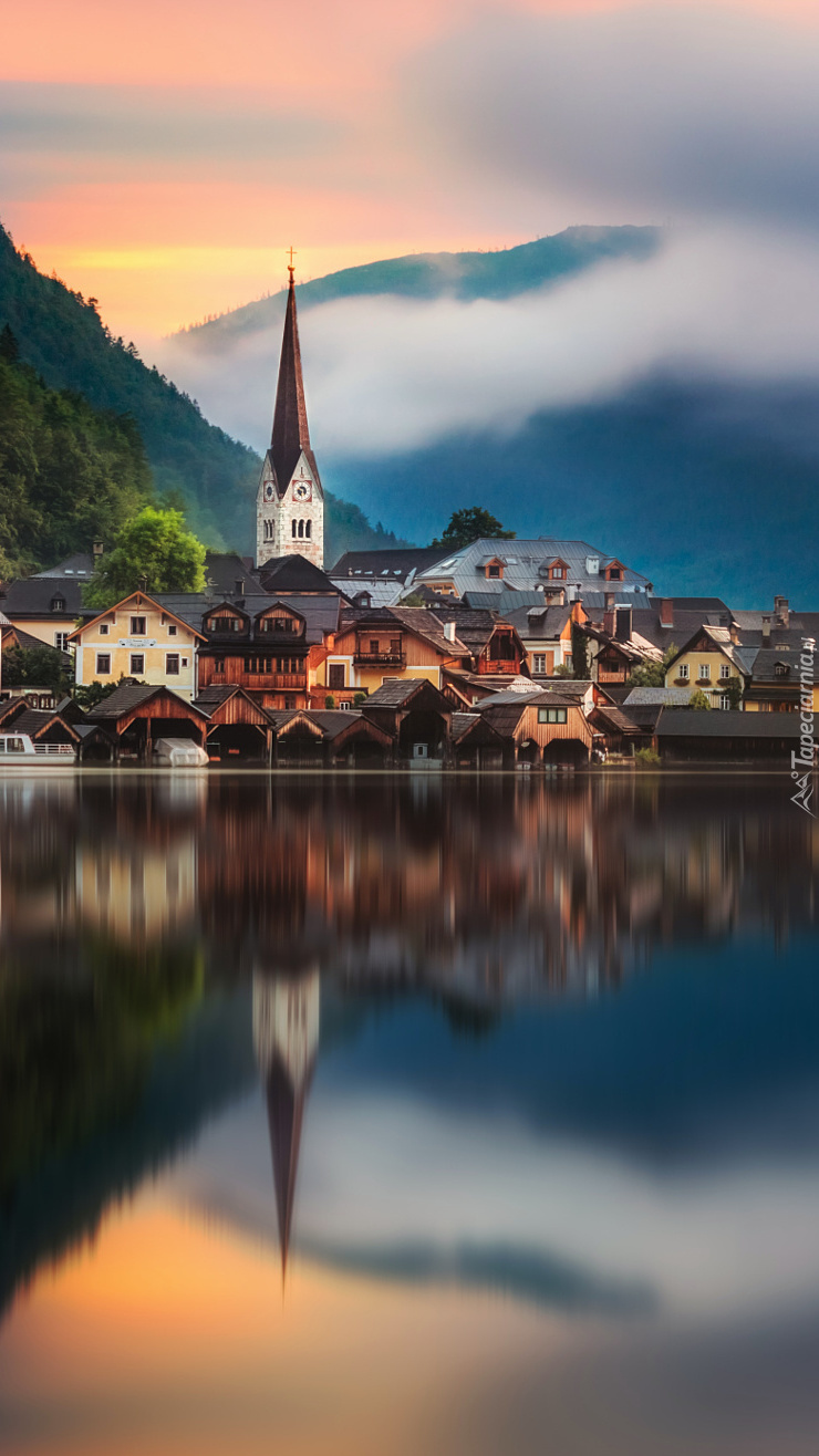 Edytor tapety: Miasteczko nad spokojnym jeziorem