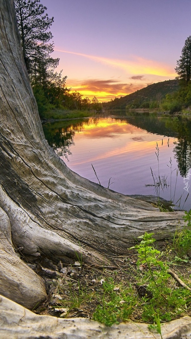 Edytor tapety: Pień ogromnego drzewa nad rzeką