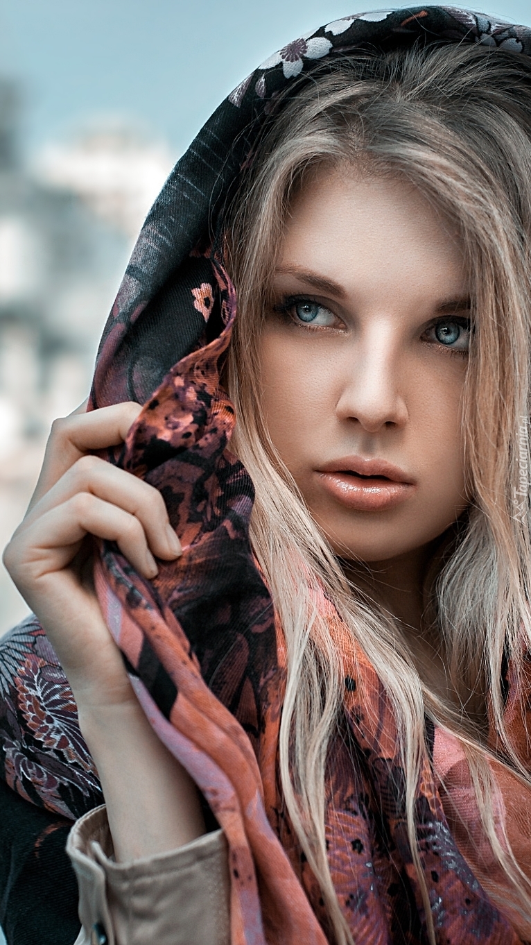 Edytor tapety: Kobieta osłaniająca się chustką od wiatru