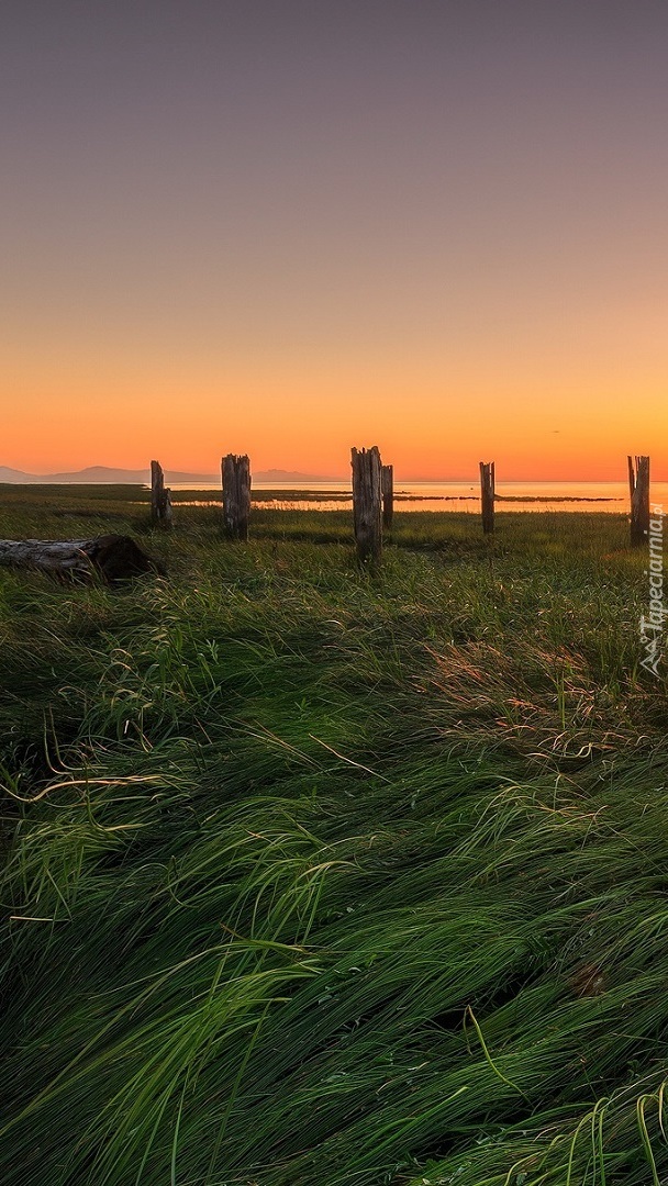 Edytor tapety: Pale i trawa nad jeziorem