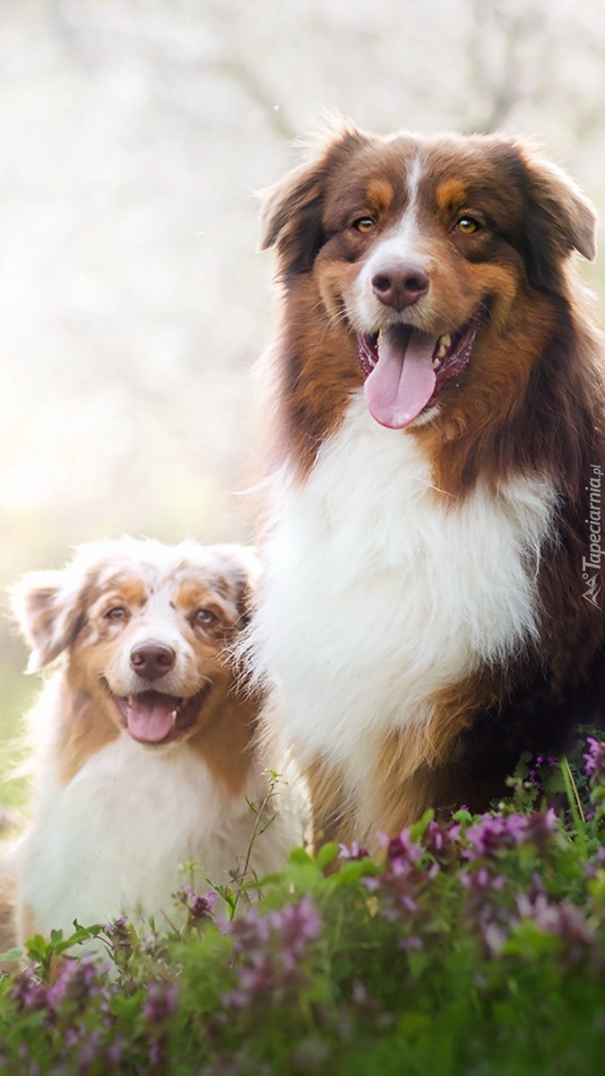 Edytor tapety: Dwa owczarki na łące pełnej kwiatów