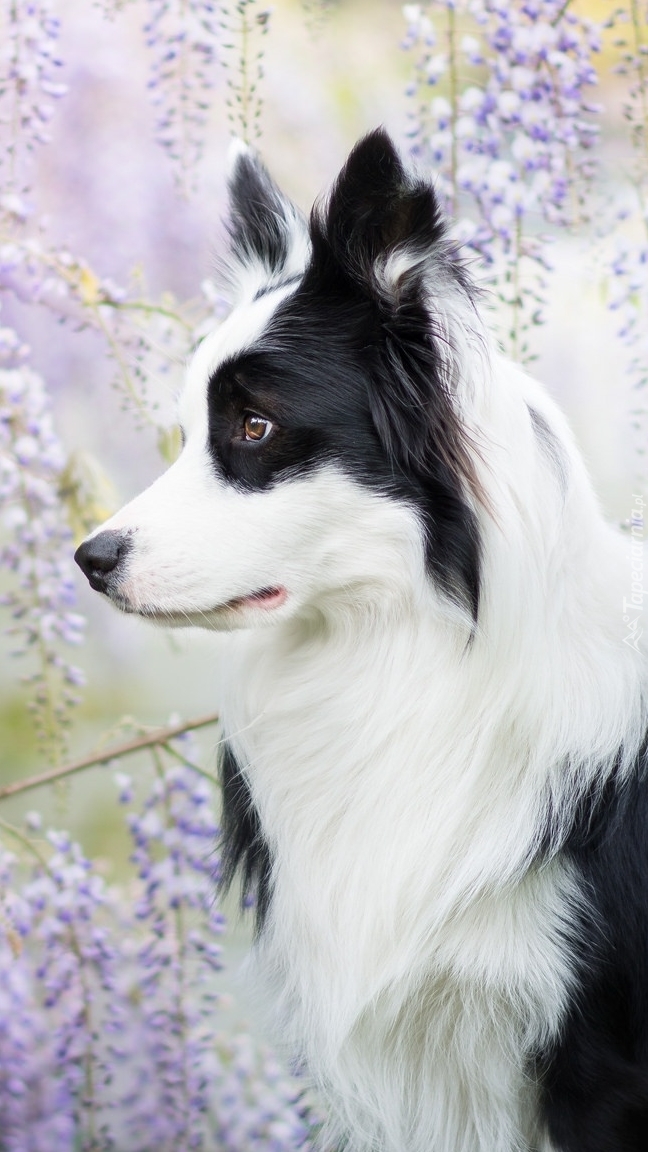 Edytor tapety: Border collie na tle glicynii