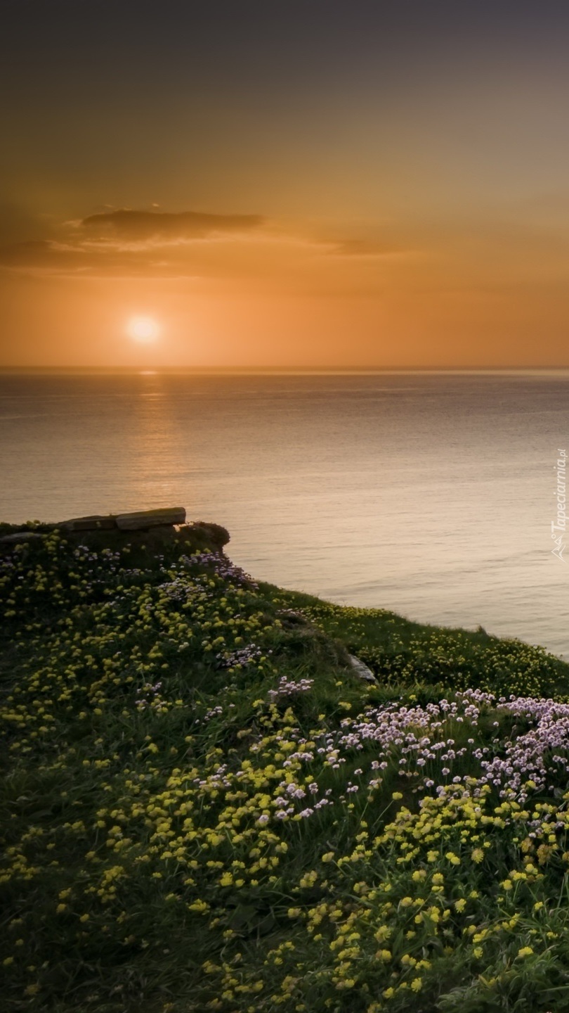 Edytor tapety: Ukwiecone wybrzeże w zachodzącym słońcu