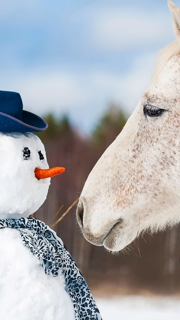 Edytor tapety: Spotkanie konia z bałwankiem