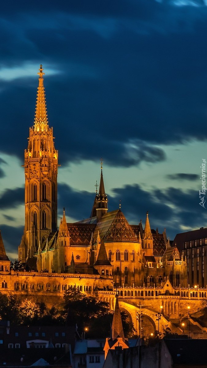 Edytor tapety: Oświetlony kościół nocą