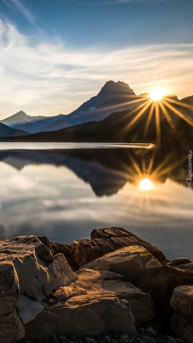 Edytor tapety: Kamieniste jezioro w górach