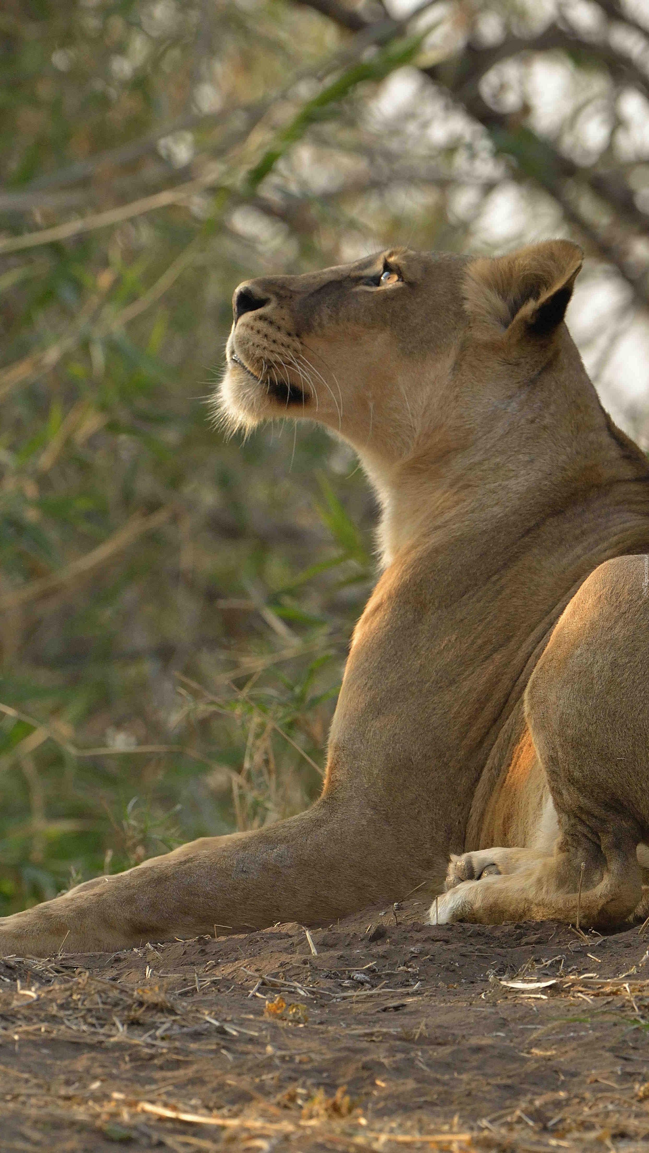 Edytor tapety: Leżąca lwica spoglądająca w górę